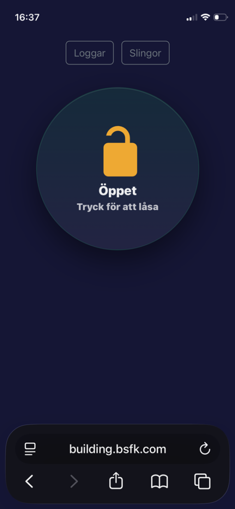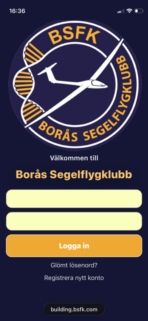 Vi har uppgraderat låset och larmet för klubbstuga och hangar. För att kunna låsa upp och larma av så används nu en egenutvecklad mobil lösning med webbadress building.bsfk.com.