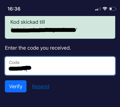 - Systemet använder tvåstegsverifiering så du får en kod skickad till dig via SMS eller e-post. Fyll i koden och klicka sedan på Verify.